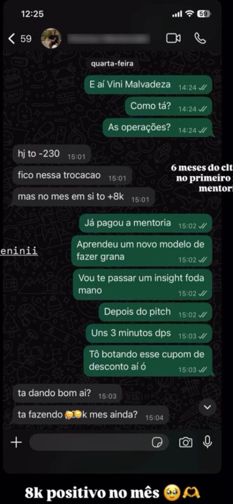 Diferente de outros “gurus” que somem após vender, você terá meu suporte direto. Dando feedbacks e ajustando estratégias com base no que está funcionando AGORA.